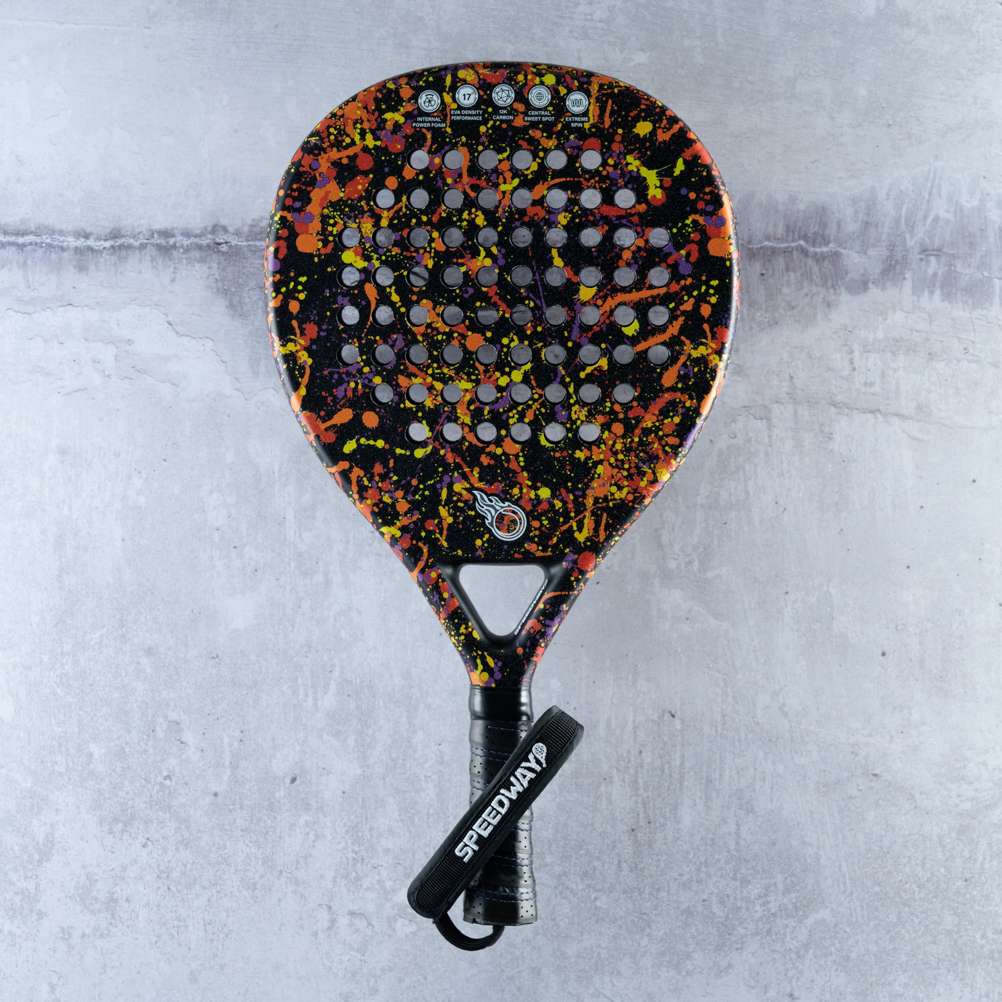 Engineered with Speedway’s signature carbon fusion frame and textured 12K face, it delivers a perfect balance of power and control — ideal for attacking players who love to dominate the net and strike with precision. The high-density EVA core ensures explosive rebounds, while the anti-vibration system keeps every shot smooth and stable.